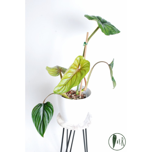 Anthurium besseae affBesseae aff to jedno z najpiękniejszy anturiów (naszym zdaniem;), jego liście rosną spore, zamszowe, dorosłe są kartonowo-sztywne, obwódka liścia...